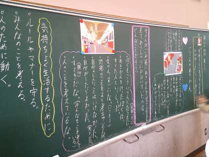 「みんなが気持ちよく生活するためにはどうすればよいか」について、「ジュースのあきかん」という教材を使って話し合いました。
