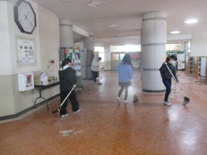 土曜日とはうって変わって寒いスタートになりました。今日は、風の強い日でエントランスには、葉や土ほこりがいっぱいでした。6年生が掃除の時間にきれいにしてくれました。6年生ありがとう