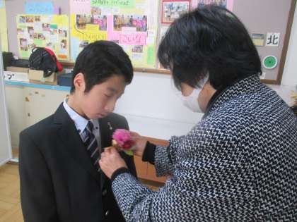 コサージュを付けて、卒業式へ。思い出を語り合うと自然と笑みや涙がこぼれてきました。卒業おめでとう。ずっと応援しています。