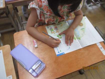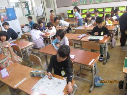【1年生】4月14日 書写 せんをなぞろう