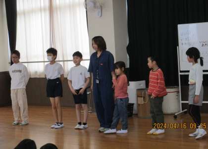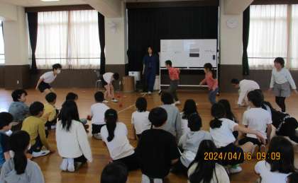 4年生となかよし学級とで交流学習をしました。なかよし学級から学年と名前、好きな○○の自己紹介をした後、「白黒つかない気持ちの時、グレーもあっていいよね。気持ちを伝えられたらいいね」の話を聞きました。やさしい気持ちになりました。