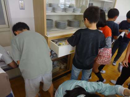 5年生から新しく始まる教科、家庭科の学習がスタートです。今日は、これからの学習で使うことになる家庭科室にどんなものがあるのかを探検にいきました。まな板やミシン、ガスコンロなどがどこにあるかを班のみんなで一生懸命探していました。ルールを守り、安全に気を付けて家庭科の学習を進めていきます。
