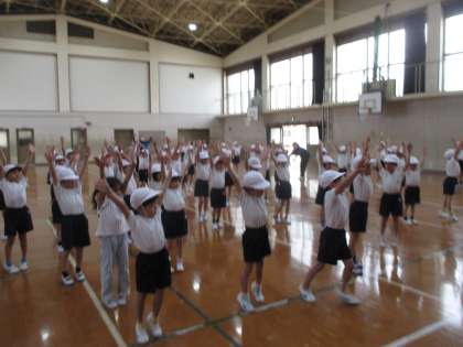 体育館で体育の学習をしました。全身を使った運動に取り組みました。