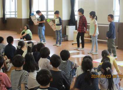 今朝は、元気いっぱいのなかよし学級と3年生とで交流学習をしました。