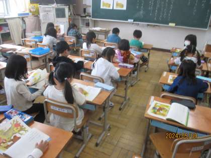 絵をもとに登場人物やどんなことを話しているのか、季節はいつなのかを話し合いました。