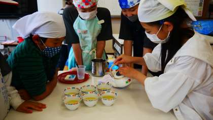 2組もお茶の実習を行いました。手順をよく理解して、班の人と協力しながら美味しいお茶をつくっていました。「最後の一滴まで…!」「美味しい!」などと感想を言っていました。