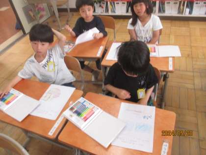学校探検を終えて、見つけた場所を記録しました。
