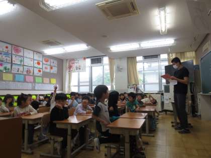 朝の会では、担任の先生と今日一日の確認をしていました。
