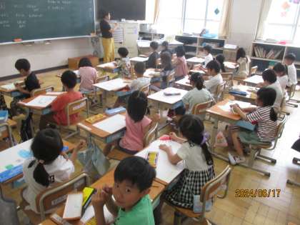 2年生と一緒にご飯を食べたことやウォークラリーをしたことを絵にしました。