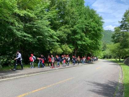 到着し、京都バスからおりました。心配していた車酔いは1人もなく、皆んな元気です。