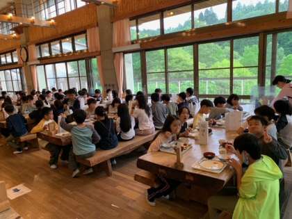 初めて食堂でバイキング形式の晩御飯を食べました。「全部おいしい!」とおかわりをしている子が多かったです。
