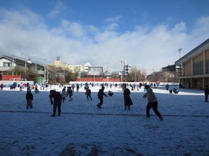 1・2時間目にしんしんと降り積もった雪に大喜び!