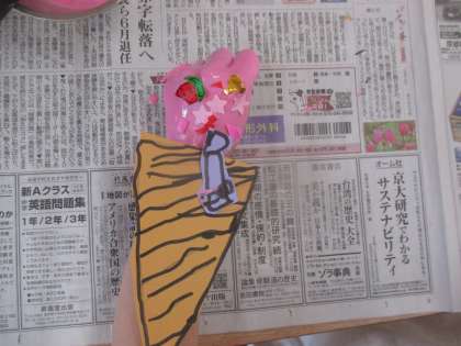 図画工作の時間に、自分の大好きな自分だけのアイスクリームを作りました。「わたしは、いちごみるく」「チョコミントもおいしいよ。」等おいしそうなアイスクリームができあがりました。