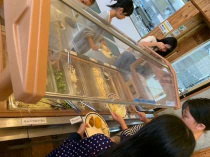 お待ちかねの夕食バイキング。みんなしっかりと食べていました。