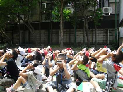 金環日食の時とは違いとても分かりにくい観察でした。日食グラスを使い観察していると小さな点を発見!それが金星です。子どもたちは,「見えた」「見えた」と,とても大騒ぎでした。次は105年後です・・・。