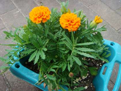 5月に種をまいてもう花を咲かせているマリーゴールドにビックリしています。これからしっかり水をやって育てていきます。