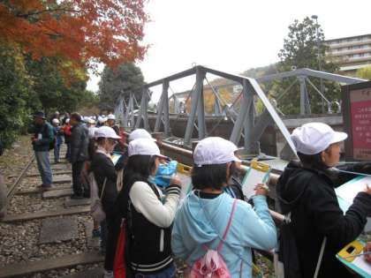 また,水路閣では,当時の建造物が今も使われていることを実際に確かめることができました。見学をした子どもたちの感想には,「多くの人たちが協力して,琵琶湖疏水ができたんだなぁ」「たくさんの人が努力して頑張ってつくってくれたことがわかった」「水路閣の水の流れが速くて,驚いた」「見学をしたので,もう少し調べてみたい」などがありました。今日の学習をこれからの学習に活かしていきたいと思います。