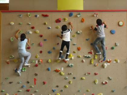 4日目の午前は,ボルダリングに挑戦しました。はじめは,低い壁で練習し,その後,7mの壁に挑みました。友達のあたたかい応援の声に励まされて頂上まで登ることができました。