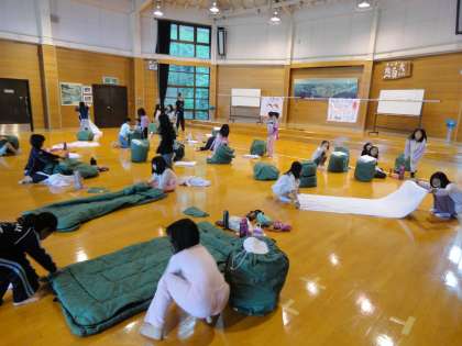 昨夜は心配していた雨もなく、過ごしやすい夜でした。多くの子どもたちは、ぐっすりと眠っていました。今日は朝から快晴です。寝具を片付け、朝食をしっかりとって今日の活動に備えています。