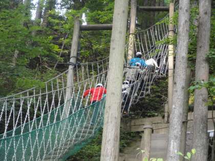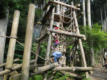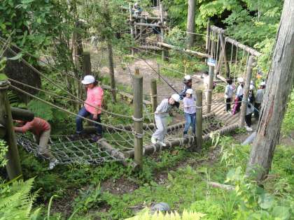 第3日目の午後の活動で、冒険の森アスレチックをしました。子どもたちが楽しみにしていた活動の一つです。本格的なコースが整備されていますが、約1時間、コースを動き回っていました。とても気に入ったようです。もっとしたいという声が聞かれました。
