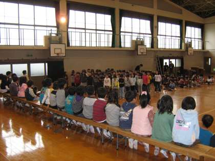 22日(木)に1年生を迎える会がありました。5年生と手をつないで入場した1年生は,みんな笑顔で元気いっぱい!なかよし学級から6年生まで,これからはじまる学校生活の楽しさを,歌や言葉に思いを込めて伝えました。また,「世界に一つだけの花」を全校が一つになって,美しい歌声で歌いました。最後は,2年生からうれしそうに首飾りのプレゼントを受け取っていました。