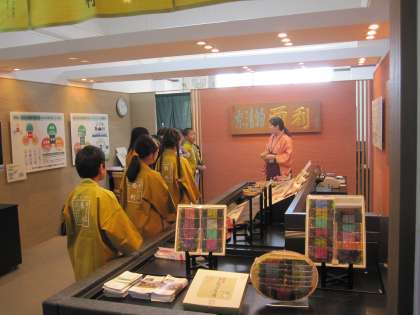 会社のユニホームを着て,すっかり様になった子どもたち。わくわくしながら,お店に入っていきますが,最初は仕事の内容をおぼえることに一生懸命な様子でした。しかし,2回,3回と仕事を繰り返していくうちに,自分で考えて行動できるようになりました。また,社内会議をもち,自分たちの行動を振り返る機会をもちました。みんなで知恵を出し合い,学習を進めることができました。