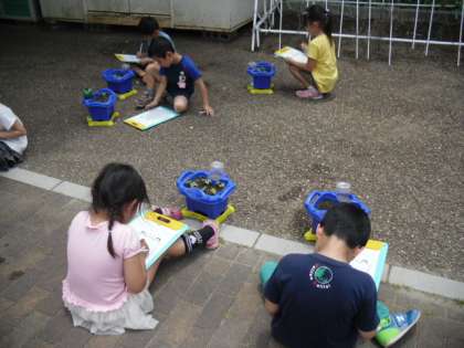 生活科の学習でアサガオを育てています。毎朝水やりをしたり,観察をしたりしています。「だれよりも きれいな はなが さきますように」「おおきくなあれ」と願いをかけてまいた種から芽がでました。
