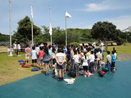 早朝に集合し、全員元気に出発しました。現地の天気は晴れです。気持ち良い風が吹いています。英虞湾の波は静かで、船はゆれることなくみさきの家に到着しました。お昼のお弁当を食べて、元気よく午後の活動を始めました。