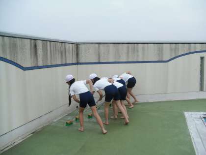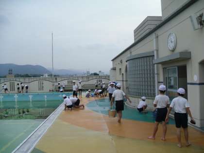 6月16日に5・6年生がプール清掃をしました。5年生は,プールサイドや更衣室など,6年生がプールの中をきれいにしました。デッキブラシやたわしを使って1年間の汚れを落としました。これで気持ちよくプールに入ることができます。