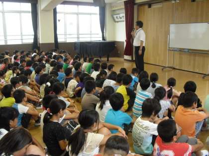 長かった夏休みも終わり,学校に子どもたちの笑顔が戻ってきました。朝会では,校長先生から夏休みをふり返り,約束を守り自分や友達の命を守っていこうというお話がありました。そして,嫌なこと,つらいことを乗り越えた先に本当の喜びがあることから,がんばろうというお話を聞きました。