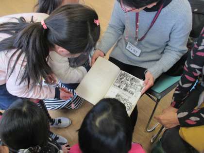 はじめに地域の方々に,昔の町の様子や道具についてなどの話を聞き,疑問に思ったことを教えていただきました。次に七輪体験をしました。子どもたちは地域の方々といっしょに火をおこしたり,おもちを焼いたりしました。「上手に焼けるかな。」「火を起こすの大変だな。」と言いながらも一生懸命学習に取り組んでいました。自分たちで焼いたおもちを食べ,「とても美味しい。」「いつもよりも味がいい。」などと話していました。これからも,自分たちの町の歴史に興味を持ったり,歴史に触れたりしていってほしいです。
