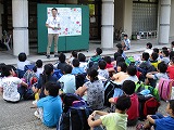 昨日まで,お天気の心配をしていましたが,今朝はとても美しい青空で,これから3日間の活動が楽しみです。子どもたちは,出発式でこの活動を通してがんばることを確認し合い,期待に胸を膨らませて元気いっぱい出発しました。