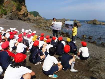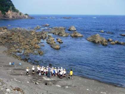 午後から宮崎浜で磯観察を行いました。3日目に行くマリンランドの職員の方に来てもらい,磯にすむ生き物について教えてもらいました。