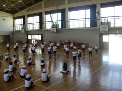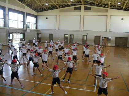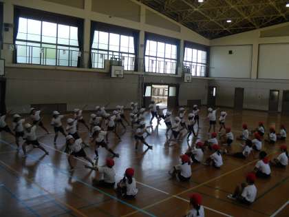 運動会の演技「バンブーカーニバル」の練習を毎日がんばっています。ダンスが大好きな3年生は,新しい動きもどんどんと覚えていきます。クラスごとにダンスの見せ合いをしました。友達の動きを見て「リズムにのっていて楽しそうだな」「手が伸びていてきれいだな」などの声が聞こえました。これからもみんなでがんばっていきたいと思います。