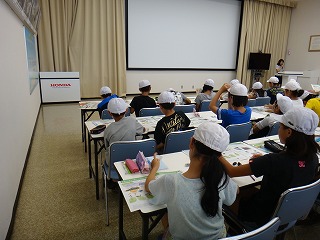 次に,鈴鹿市の本田技研自動車工場に行きました。教科書の写真で見た,自動車を組み立てる様子をすぐ近くで見学できました。安全な自動車づくりをする工夫がたくさんありました。