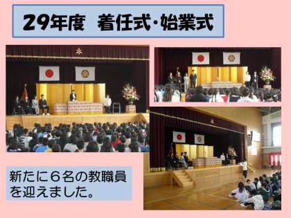 まず,6名の教職員を迎える着任式を行いました。子ども達は新しい先生を迎え,うれしそうな表情をしていました。