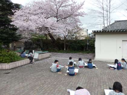今日は5年生が桜の木をスケッチしていました。満開に咲いた桜をよく観察して描いていました。どんな作品が出来上がるか楽しみですね。