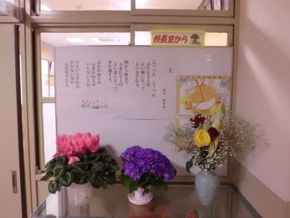 校長室の前を通っていただくと新しいホワイトボードが設置されています。そこには詩が掲示されています。仁和小のみんなに向けて校長先生からのメッセージです。今月はどんな詩が紹介されているのでしょうか?