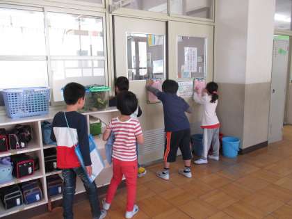 2年生にリードしてもらって,学校探検に行きました。