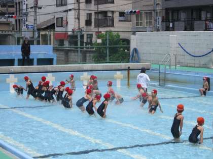 1年生は,はじめての大きなプールで,いろいろな学習のルールを覚えていきます。2年生も去年学習したことを思い出しながら,楽しく学習をすることができました。