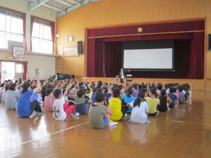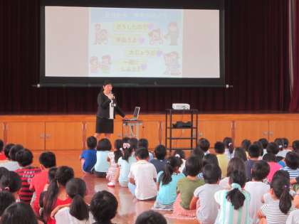8・9月の人権目標は「友だちと仲よくし,助け合おう」です。先生たちが分かりやすい寸劇を通して説明をしてくれました。学年関係なく,困っている友だちに自分から気づいてあげられる心が大切ですね。
