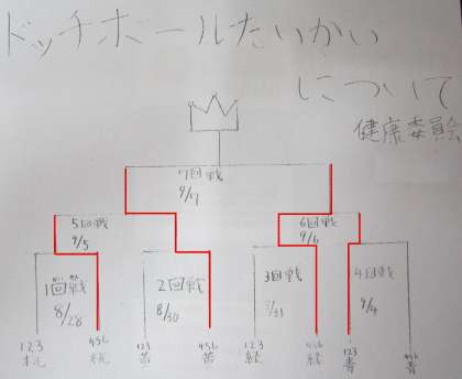 健康委員会主催のドッチボールもいよいよ準決勝。