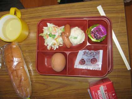 朝食は,パンとサラダと牛乳などでした。