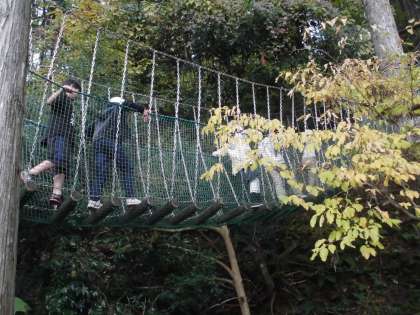 台風で杉の木が倒れ,使えなくなっていた冒険の森ですが,山の家の職員の方が懸命の復旧作業をしてくださって,半分は使えることになりました。子供たちからは,「やったあ。」という歓声が出ました。でも,半分だけなので,少し時間を短くして,アスレチックのほうにも行くことになりました。
