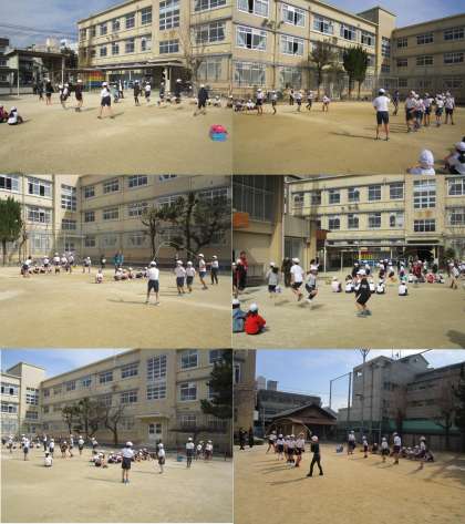 練習期間中は,運動場の状態が悪い日もあったのですが,今日は運動場の状態もバッチリでした。どのグループも練習の成果を発揮して力いっぱい跳んでいました。見守る友だちからも,大きな声で回数を数える声が聞こえてきました。