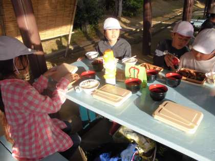 みさきの家の初めての食事です。食事係さんが準備をしてくれている間にお茶を入れて待ちました。お弁当ですが、温かいご飯とお味噌汁がとてもおいしかったです。いっぱいお代わりをする人もいました。