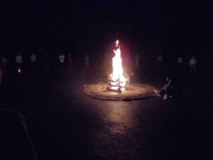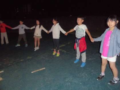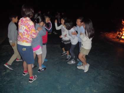キャンプファイヤーでは、火の神様から火をもらい、火の子たちが点火してくれました。燃え盛る炎を中にして、ゲームや踊りで大盛り上がりをしました。みんなで盛り上がろうとする気持ちがとてもよく表れていてとても楽しそうでした。