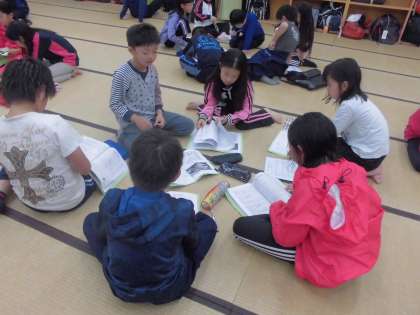 キャンプファイヤーは大盛り上がりでした。そのあと、とてもうつくしいほしがでていましたので、芝生広場で熱転がってとっても美しい星を見上げました。時間が押していましたので、そのあと反省会をしました。一日あった楽しかったことをグループで話し合いました。また、目標が守れていたかどうか確認しました。