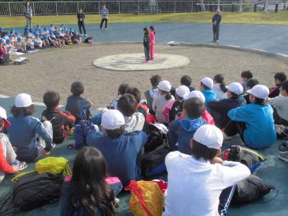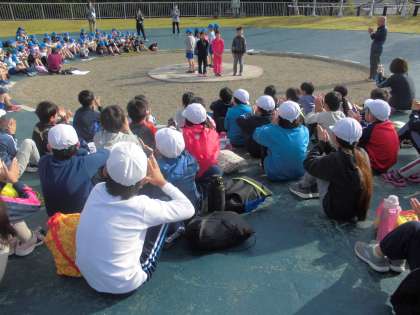 朝はぼおっとしやすいのですが, 案外みんな声を掛け合ってさっさと行動ができていました。5分前行動もしっかりとできていて、朝の集いがすっとスタートすることができました。正親は二条城北の3分の1の人数ですが、校歌の歌声もしっかりと出ていました。学校紹介も正親の良いところをしっかりと言えていました。とても立派でした。
