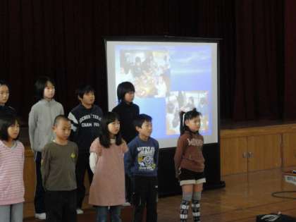 4年生が発表しました。10月に体験した「みさきの家」の発表をしました。